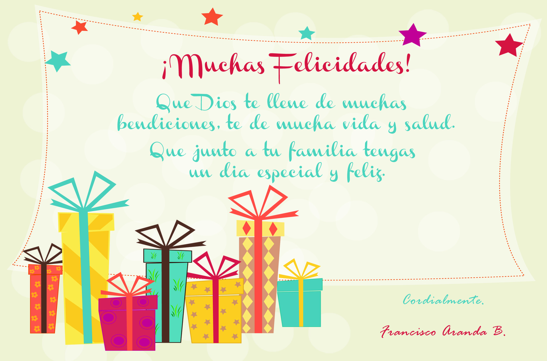 Aniversario del sms cómo se logró enviar el primer. Un three de diciembre de 1992, un empleado de una empresa de tecnología británica envió el mensaje "feliz navidad" a través de una línea de telefonía móvil, lo que se convirtió en los angeles génesis de los mensajes de textos, teclados de letras para el celular y lo que hoy se conoce como whatsapp. Bonitas frases de cumpleaños para un trabajador saludos de. Bellas frases de cumpleaños para un trabajador el clima organizacional es uno de los puntos esenciales entre los angeles relación de los jefes con los empleados. Estos tienen que laborar cómodamente y saber que son valorados dentro de l. A. Empresa, de esta manera sentirán mucho ánimo al realizar sus funciones diarias aportando al. Tarjetas con bonitos saludos de cumpleaños para mi jefe. Mensajes y palabras para felicitar a mi jefe por su cumpleaños los cumpleaños de todas las personas son importantes, porque es un día de celebración, no de un año de estar más viejos, sino de un año más de vida, de oportunidades varias y de felicidad. Fotomatón photocall para bodas, comuniones, cumpleaños.. Smileyou es el fotomatón para bodas premium de última generación, llena de contenido eventos de advertising y fiestas convirtiéndolos en éxito. Increíbles frases de cumpleaños para un trabajador. En toda oficina y área de una empresa es muy importante que los empleados gocen de un mensajes, frases de cumpleaños para frasesdecumpleanospara. Frases de cumpleaños para un empleado felicitaciones. Saludar y felicitar a los empleados el día de su cumpleaños es una buena manera de demostrarles que te interesas por ellos. Pero es entendible que a veces no dispongas de tiempo para realizar una llamada telefónica o ir a saludarlo personalmente a su hogar, por eso puedes ahorrar tiempo enviándoles estas frases de cumpleaños para un empleado. Bellos mensajes de cumpleaños para tu empleador con imágenes. Enviar mensajes de cumpleaños a un trabajador como es ordinary para que una persona se sienta a gusto con su centro laboral lo importante es hacer sentir al trabajador que es una personality considerada ante los angeles empresa para que este pueda desarrollar bien sus funciones. Los mejores mensajes de navidad para los empleados. Frases navideñas para empleados de una empresa. Las compañías que tienen l. A. Meta de seguir avanzando y creciendo, siempre deben recordar valorar el trabajo que hacen sus empleados.